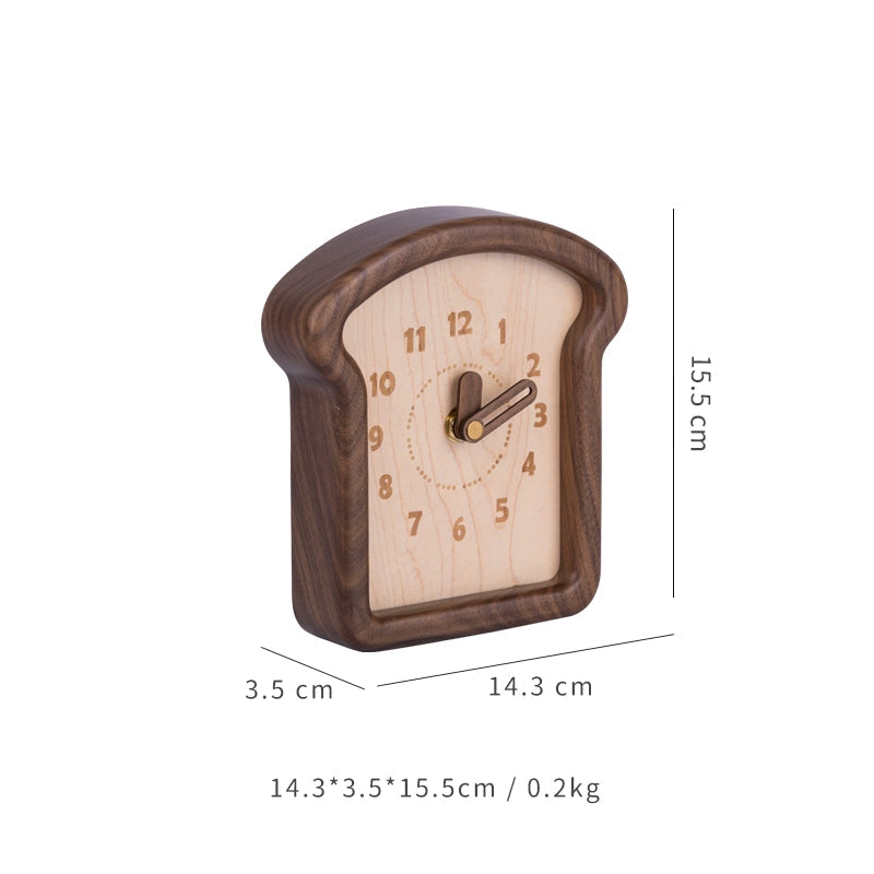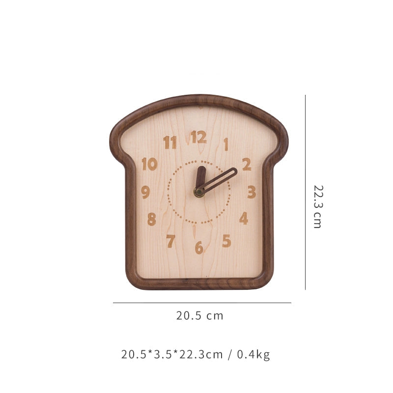 Toast Wall Clock – Solid Wood Bread-Shaped Clock (Walnut/Cherry) for Kitchen, Bedroom & Desk