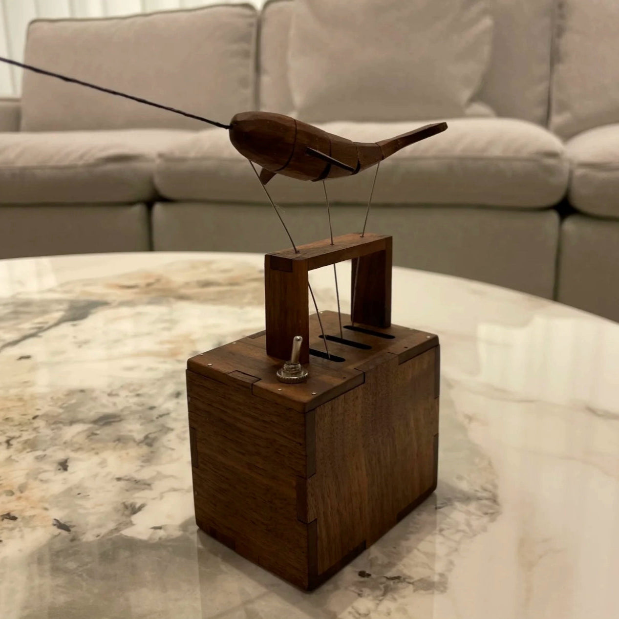 Handcrafted from premium black walnut wood, this kinetic sculpture brings the majestic beauty of the ocean into your home. Once switched on, the battery-powered mechanism animates the whale’s body, moving gracefully as if gliding through the deep sea—accompanied by the gentle melody of a music box.